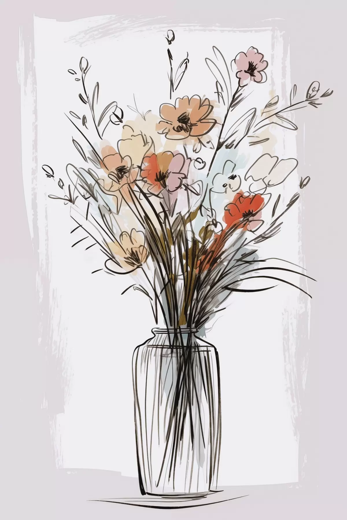 Poster Fleurs dans un vase imitation d'un dessin Nr f47495