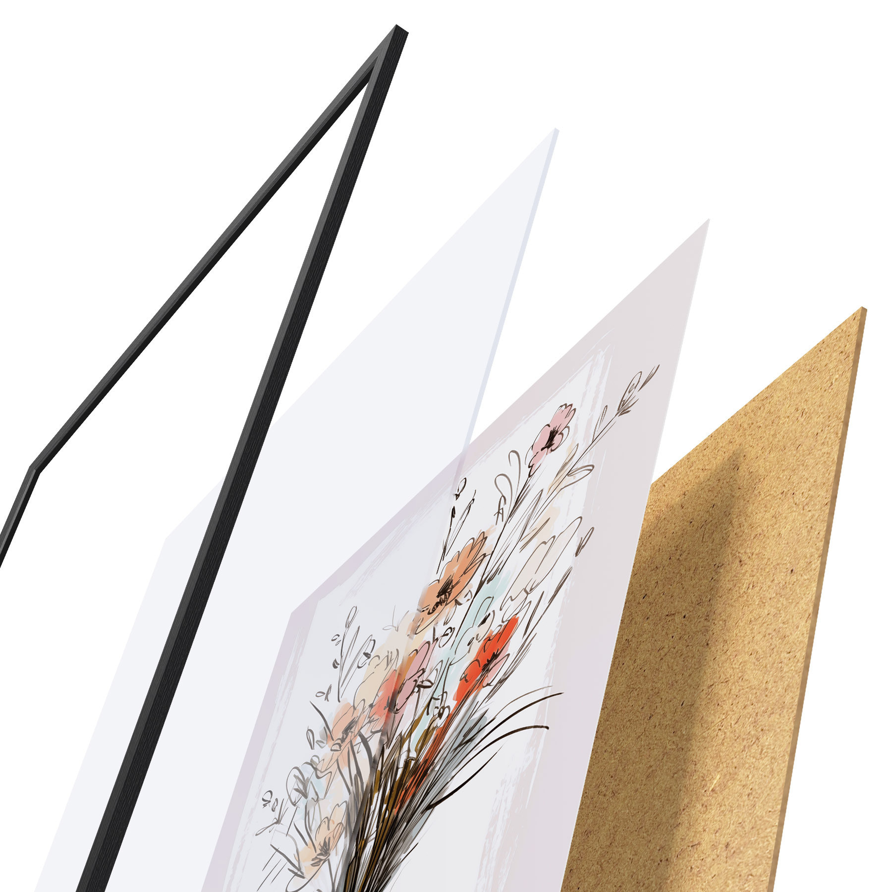 L’affiche encadrée est composée d’un cadre, d’un plexiglas, d’une image imprimée et d’un support en aggloméré. Elle est prête à être accrochée au mur grâce aux fixations situées à l’arrière.