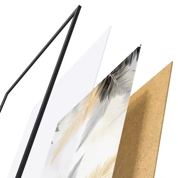 L’affiche encadrée est composée d’un cadre, d’un plexiglas, d’une image imprimée et d’un support en aggloméré. Elle est prête à être accrochée au mur grâce aux fixations situées à l’arrière.