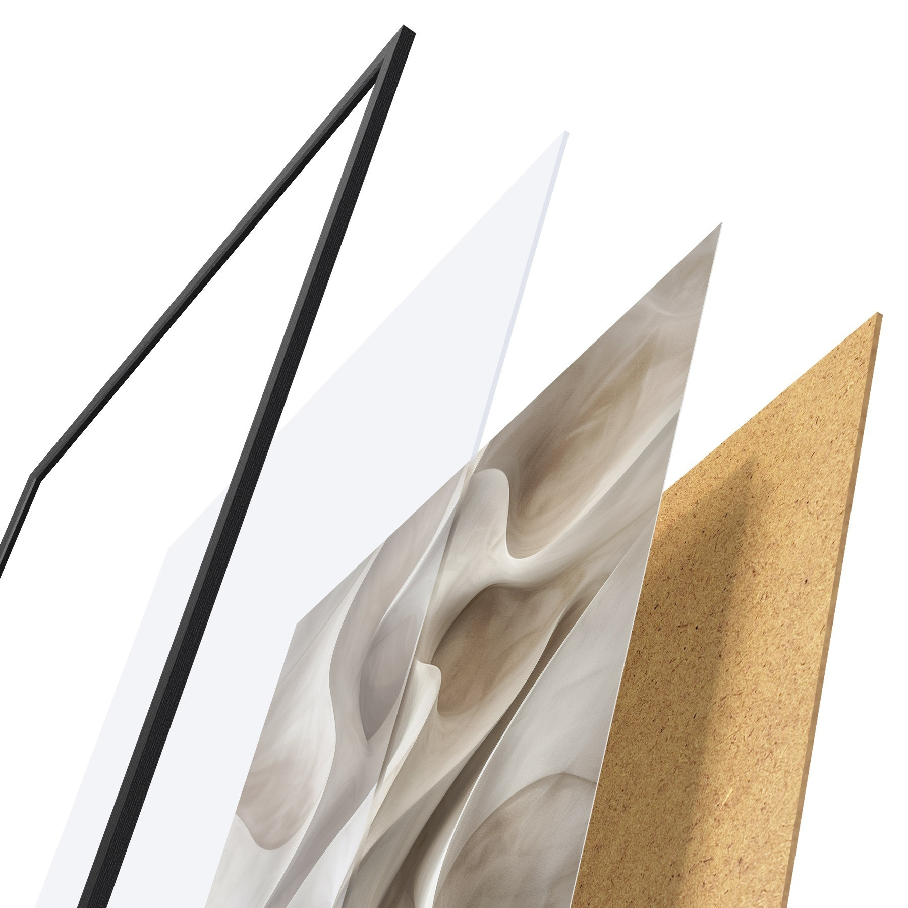 L’affiche encadrée est composée d’un cadre, d’un plexiglas, d’une image imprimée et d’un support en aggloméré. Elle est prête à être accrochée au mur grâce aux fixations situées à l’arrière.