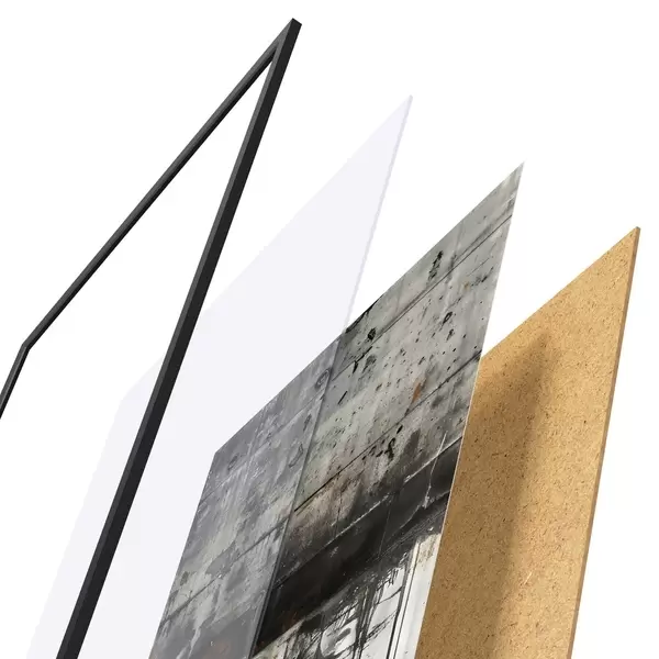 L’affiche encadrée est composée d’un cadre, d’un plexiglas, d’une image imprimée et d’un support en aggloméré. Elle est prête à être accrochée au mur grâce aux fixations situées à l’arrière.