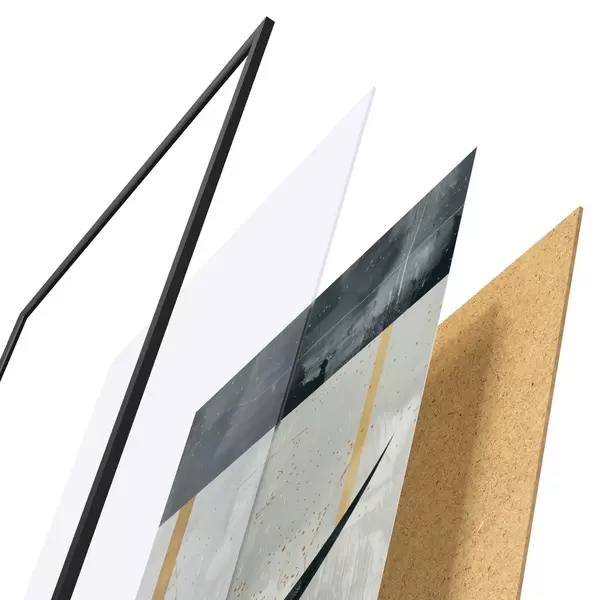 L’affiche encadrée est composée d’un cadre, d’un plexiglas, d’une image imprimée et d’un support en aggloméré. Elle est prête à être accrochée au mur grâce aux fixations situées à l’arrière.
