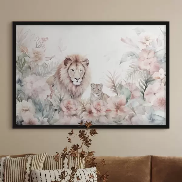 Poster Lions dans les fourrés tropicaux, imitation aquarelle Nr f47640