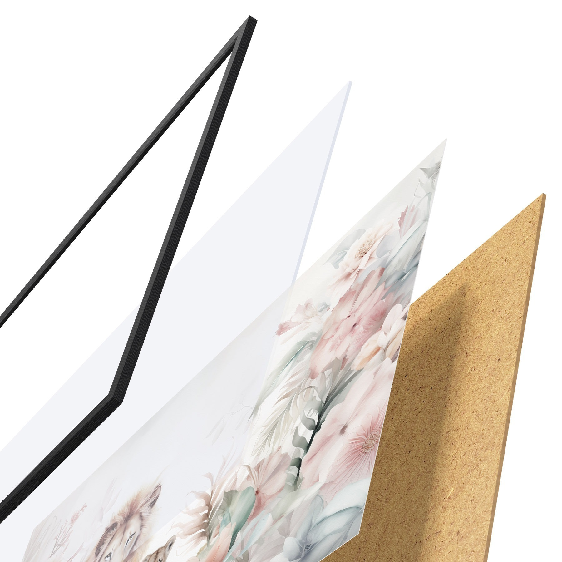 L’affiche encadrée est composée d’un cadre, d’un plexiglas, d’une image imprimée et d’un support en aggloméré. Elle est prête à être accrochée au mur grâce aux fixations situées à l’arrière.