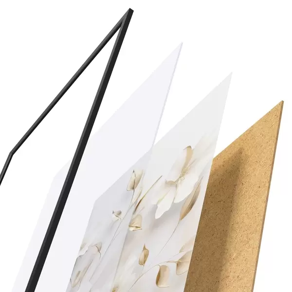 L’affiche encadrée est composée d’un cadre, d’un plexiglas, d’une image imprimée et d’un support en aggloméré. Elle est prête à être accrochée au mur grâce aux fixations situées à l’arrière.