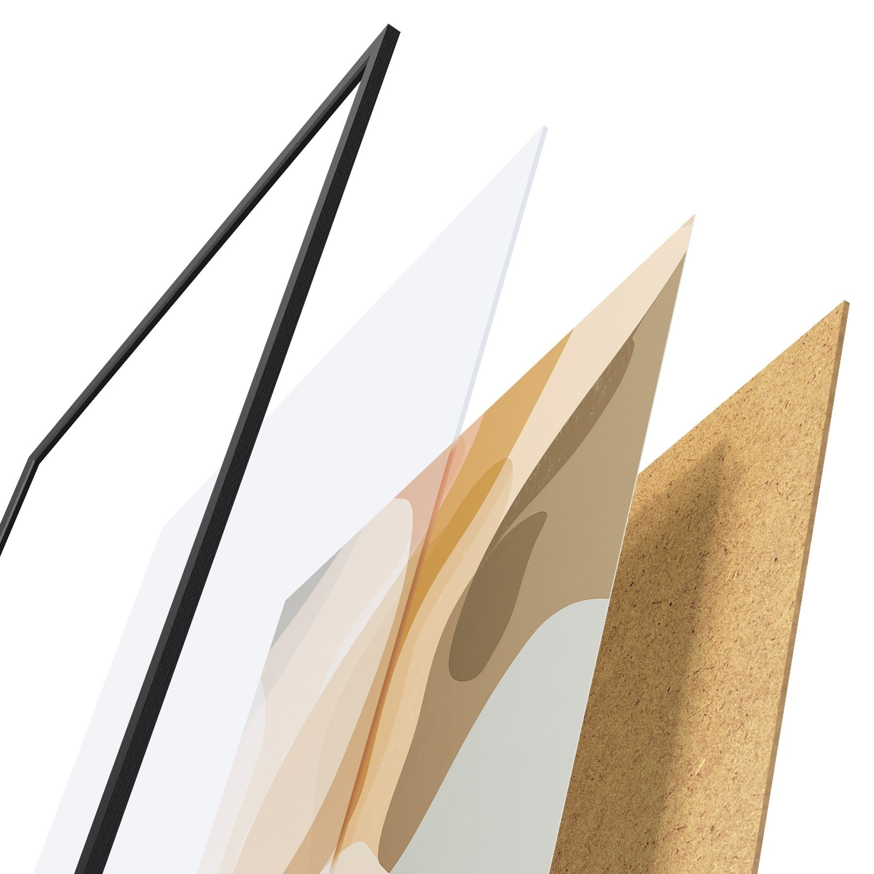 L’affiche encadrée est composée d’un cadre, d’un plexiglas, d’une image imprimée et d’un support en aggloméré. Elle est prête à être accrochée au mur grâce aux fixations situées à l’arrière.