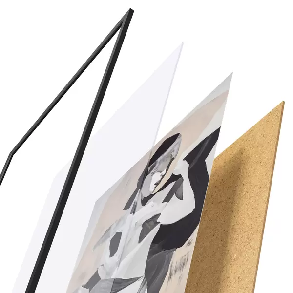 L’affiche encadrée est composée d’un cadre, d’un plexiglas, d’une image imprimée et d’un support en aggloméré. Elle est prête à être accrochée au mur grâce aux fixations situées à l’arrière.