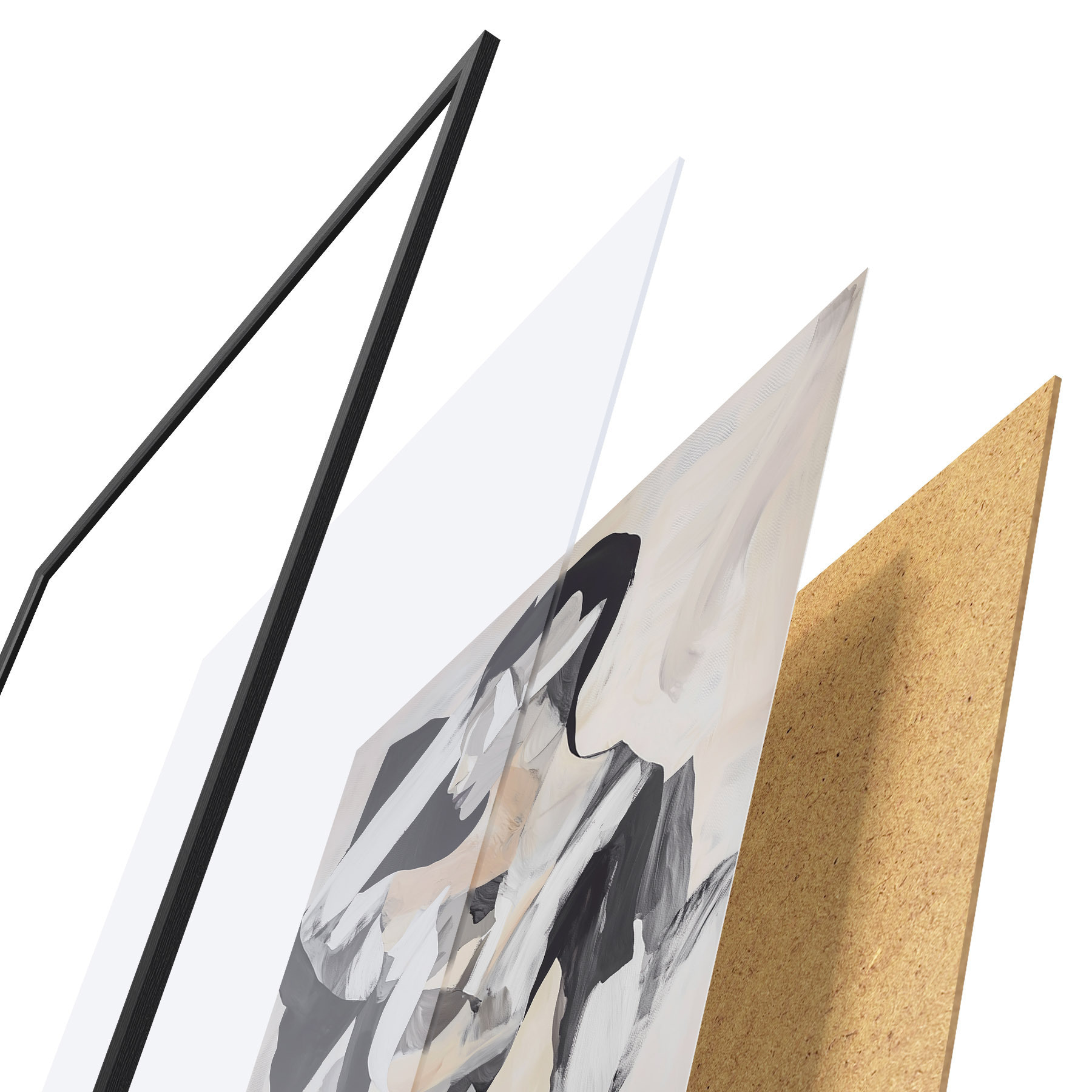 L’affiche encadrée est composée d’un cadre, d’un plexiglas, d’une image imprimée et d’un support en aggloméré. Elle est prête à être accrochée au mur grâce aux fixations situées à l’arrière.