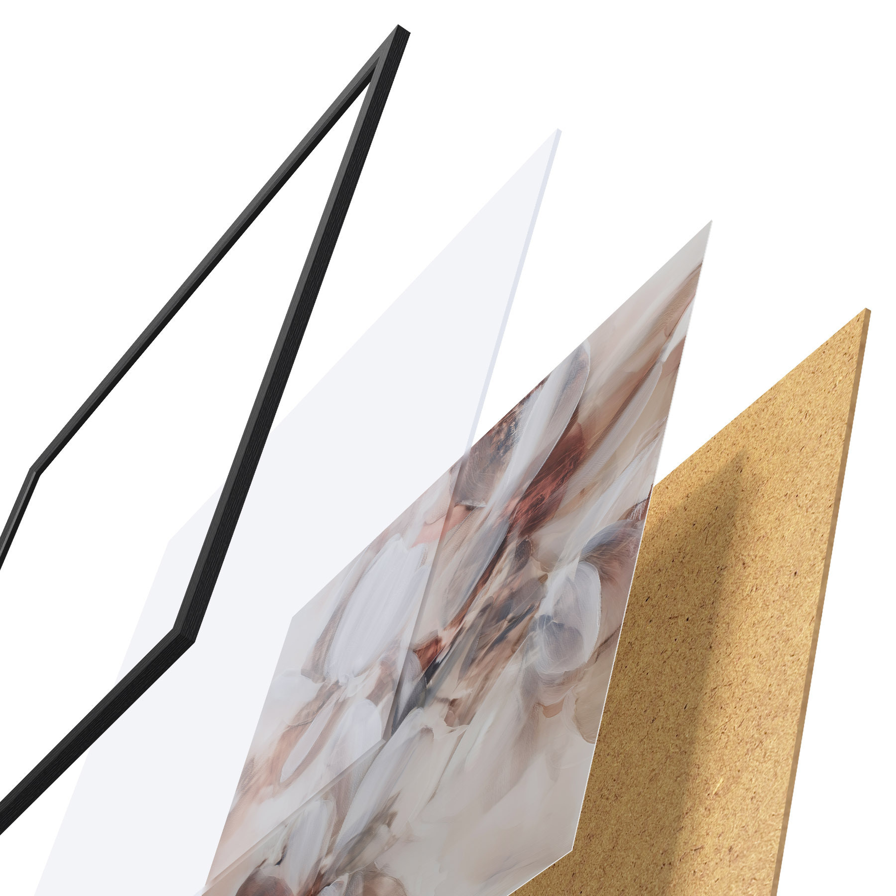 L’affiche encadrée est composée d’un cadre, d’un plexiglas, d’une image imprimée et d’un support en aggloméré. Elle est prête à être accrochée au mur grâce aux fixations situées à l’arrière.