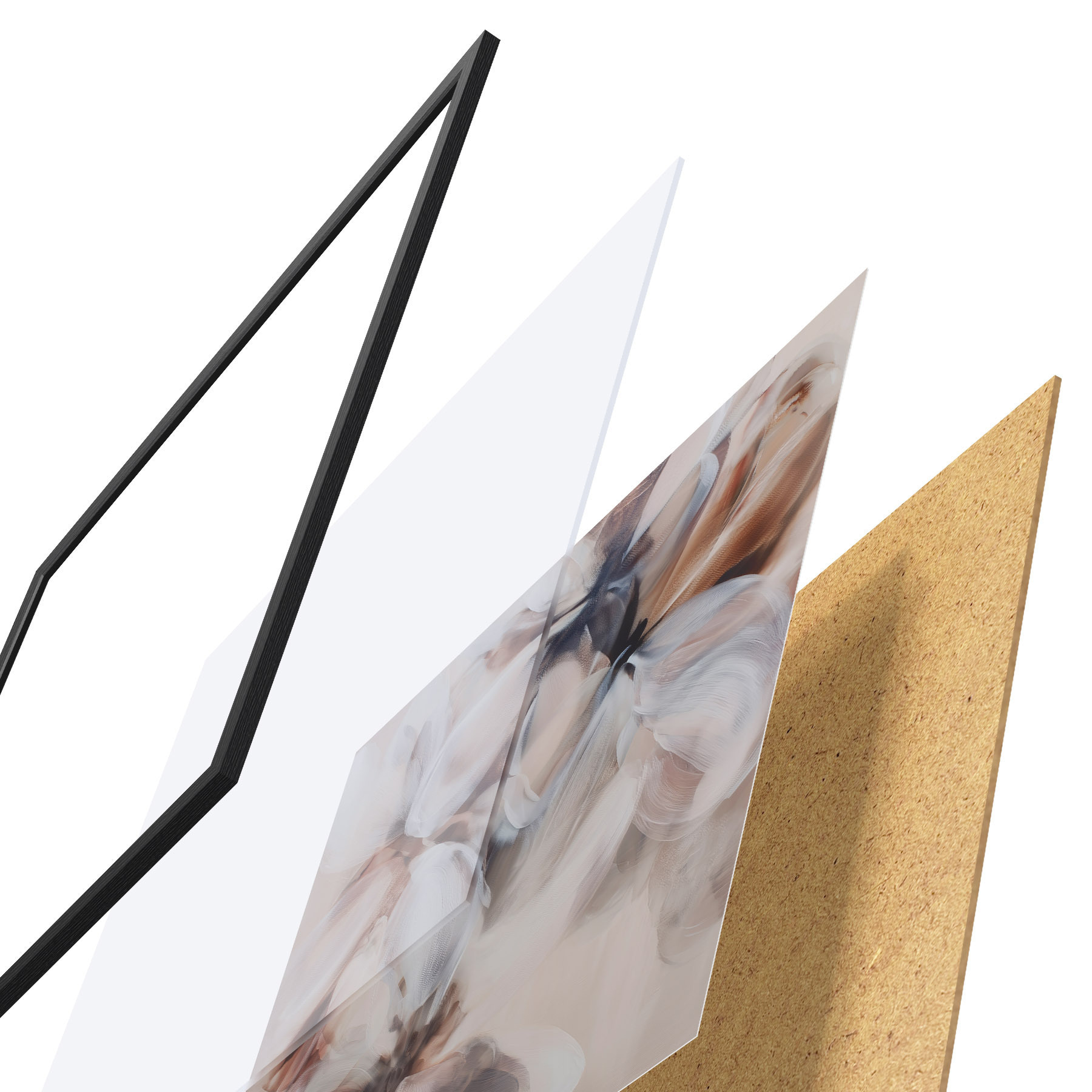 L’affiche encadrée est composée d’un cadre, d’un plexiglas, d’une image imprimée et d’un support en aggloméré. Elle est prête à être accrochée au mur grâce aux fixations situées à l’arrière.