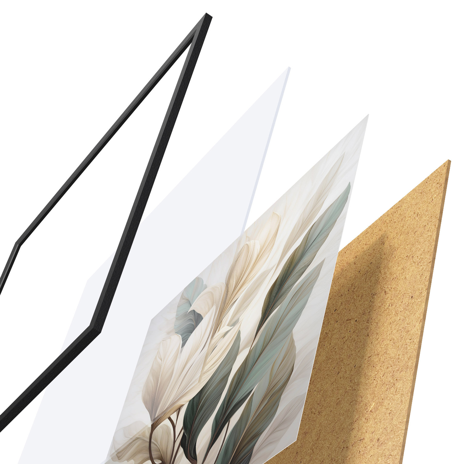 L’affiche encadrée est composée d’un cadre, d’un plexiglas, d’une image imprimée et d’un support en aggloméré. Elle est prête à être accrochée au mur grâce aux fixations situées à l’arrière.