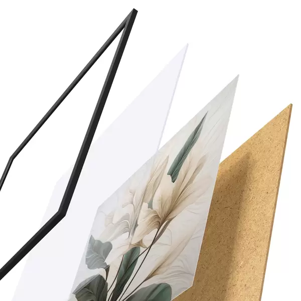 L’affiche encadrée est composée d’un cadre, d’un plexiglas, d’une image imprimée et d’un support en aggloméré. Elle est prête à être accrochée au mur grâce aux fixations situées à l’arrière.