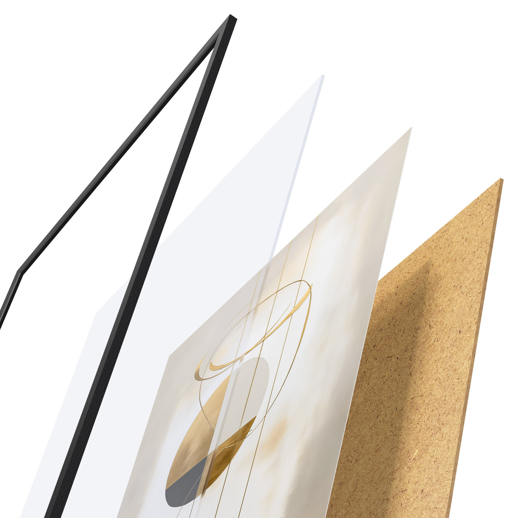 L’affiche encadrée est composée d’un cadre, d’un plexiglas, d’une image imprimée et d’un support en aggloméré. Elle est prête à être accrochée au mur grâce aux fixations situées à l’arrière.