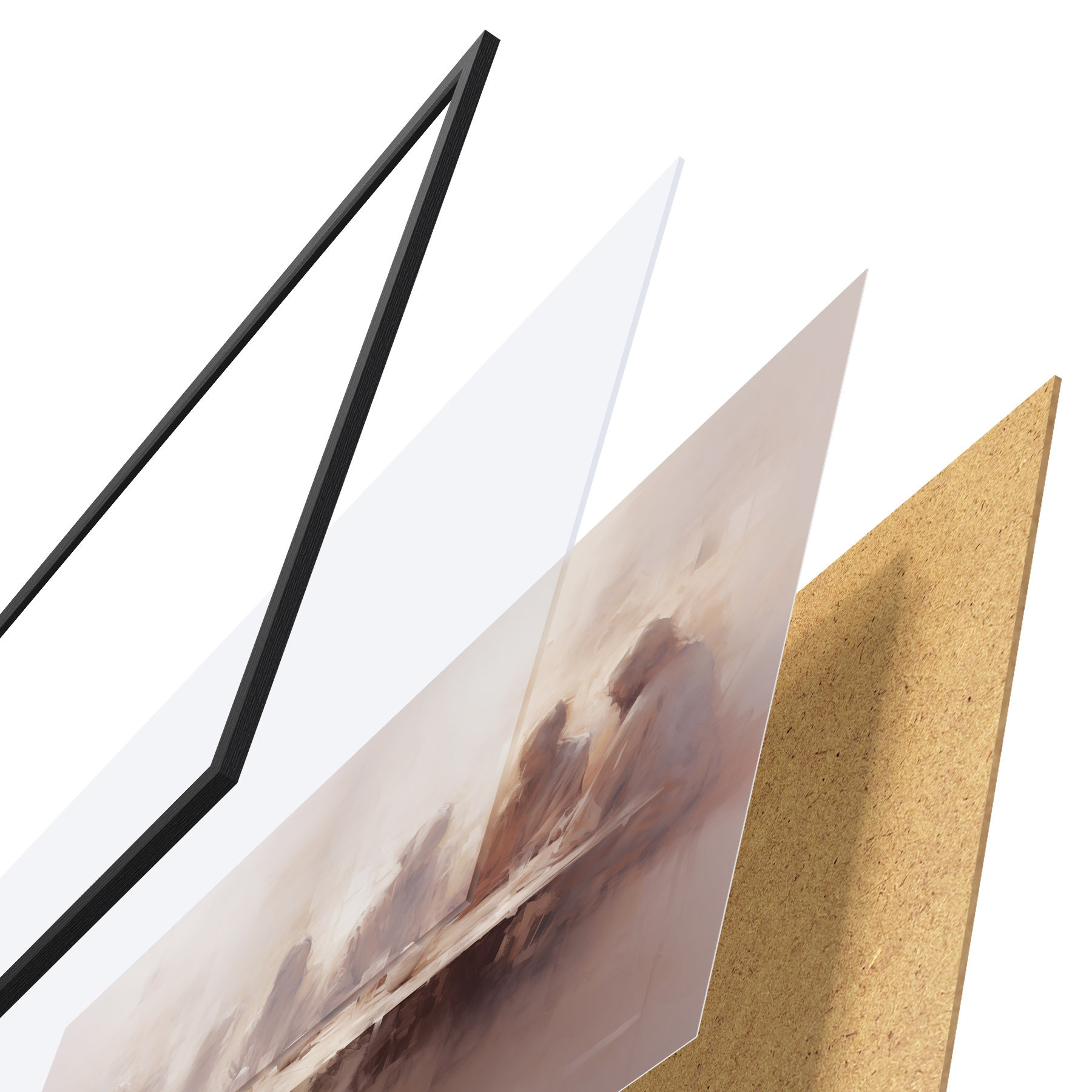 L’affiche encadrée est composée d’un cadre, d’un plexiglas, d’une image imprimée et d’un support en aggloméré. Elle est prête à être accrochée au mur grâce aux fixations situées à l’arrière.