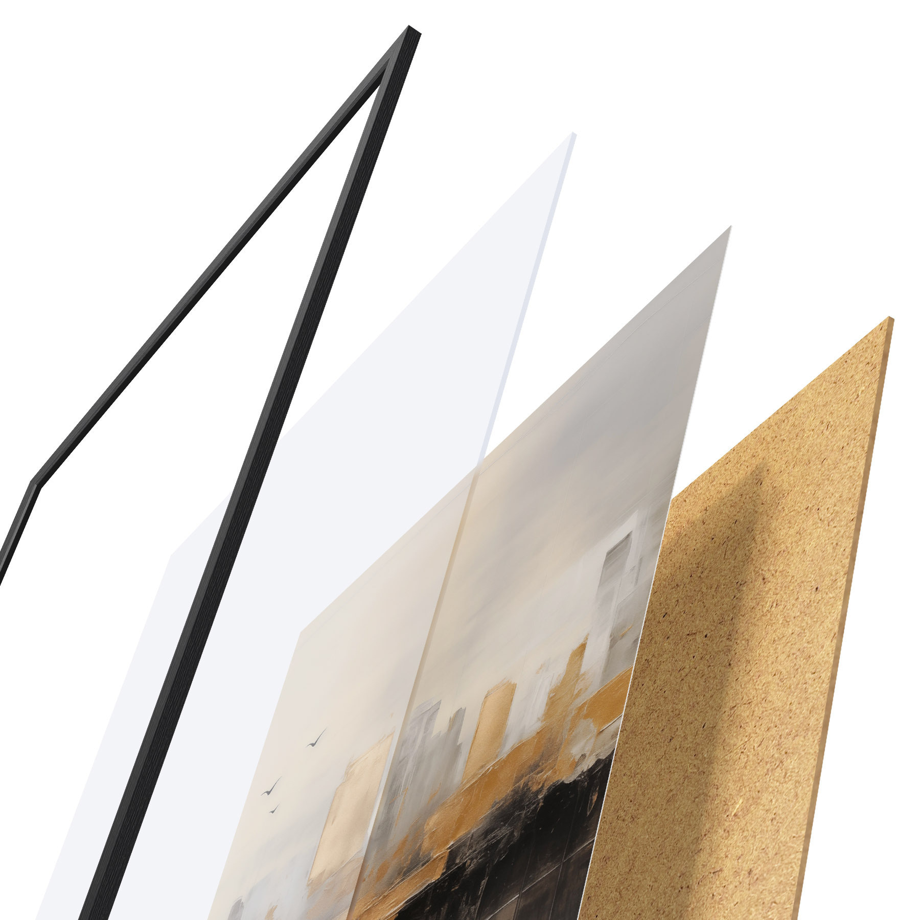 L’affiche encadrée est composée d’un cadre, d’un plexiglas, d’une image imprimée et d’un support en aggloméré. Elle est prête à être accrochée au mur grâce aux fixations situées à l’arrière.