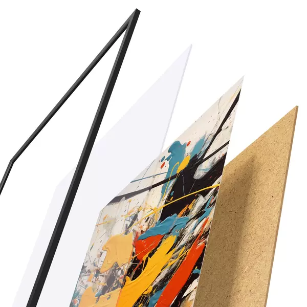 L’affiche encadrée est composée d’un cadre, d’un plexiglas, d’une image imprimée et d’un support en aggloméré. Elle est prête à être accrochée au mur grâce aux fixations situées à l’arrière.