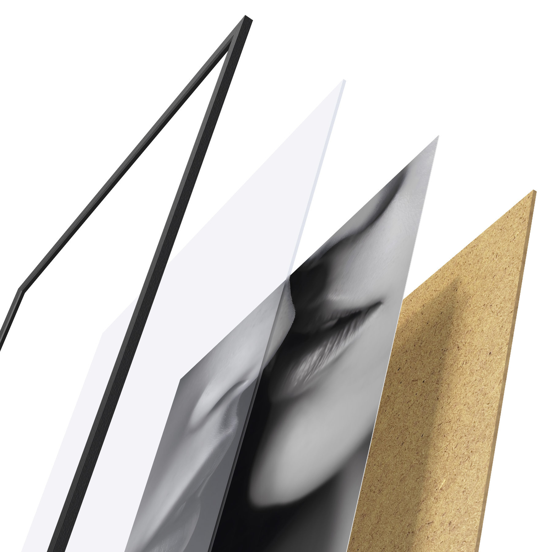 L’affiche encadrée est composée d’un cadre, d’un plexiglas, d’une image imprimée et d’un support en aggloméré. Elle est prête à être accrochée au mur grâce aux fixations situées à l’arrière.