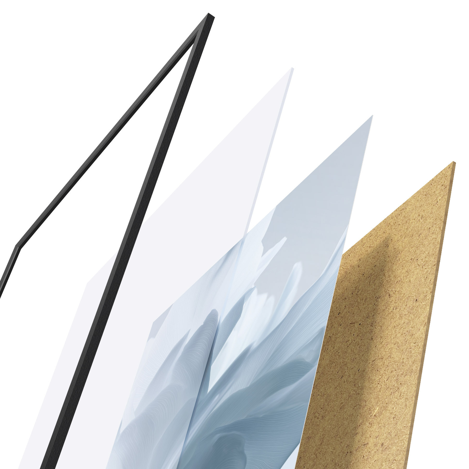 L’affiche encadrée est composée d’un cadre, d’un plexiglas, d’une image imprimée et d’un support en aggloméré. Elle est prête à être accrochée au mur grâce aux fixations situées à l’arrière.