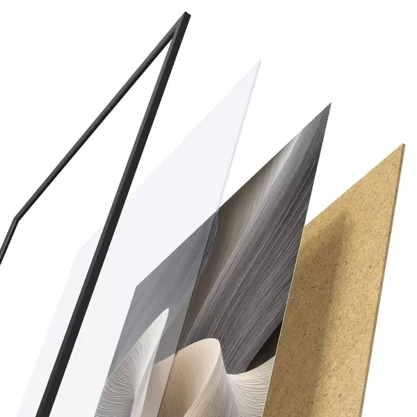 L’affiche encadrée est composée d’un cadre, d’un plexiglas, d’une image imprimée et d’un support en aggloméré. Elle est prête à être accrochée au mur grâce aux fixations situées à l’arrière.