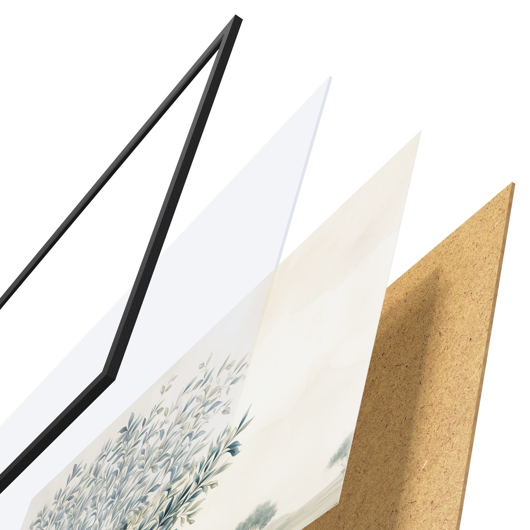 L’affiche encadrée est composée d’un cadre, d’un plexiglas, d’une image imprimée et d’un support en aggloméré. Elle est prête à être accrochée au mur grâce aux fixations situées à l’arrière.