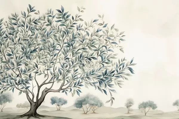 Poster Arbre dans un champ, peinture à l'aquarelle Nr f47705