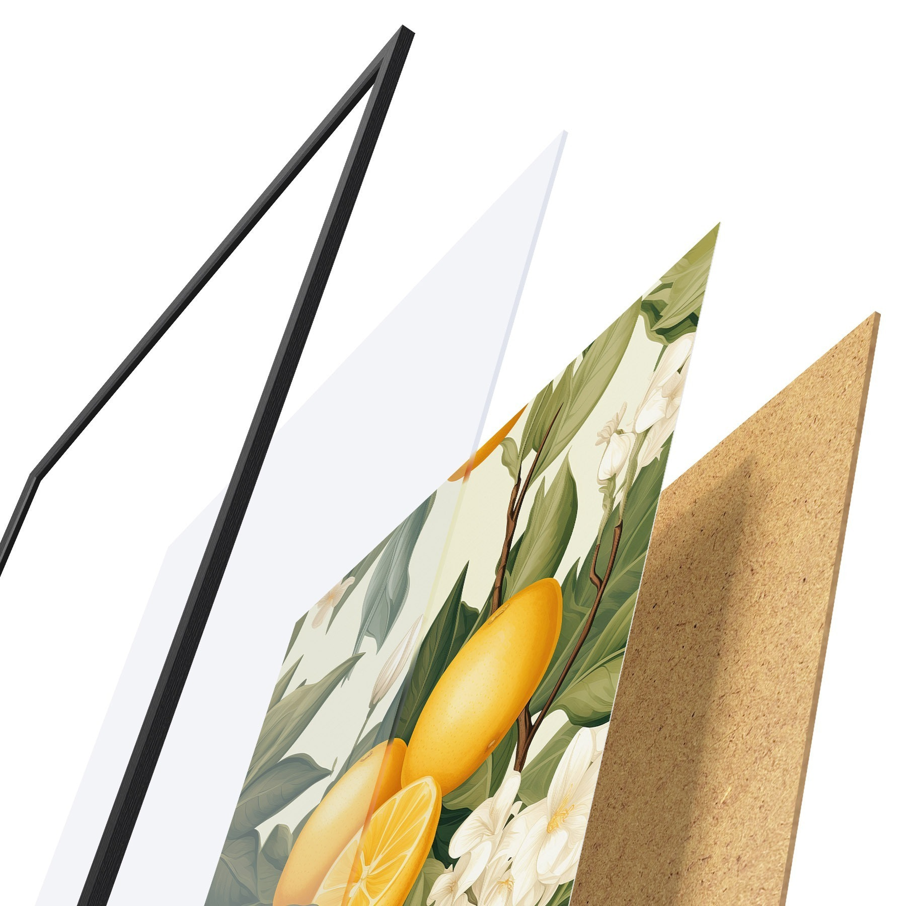 L’affiche encadrée est composée d’un cadre, d’un plexiglas, d’une image imprimée et d’un support en aggloméré. Elle est prête à être accrochée au mur grâce aux fixations situées à l’arrière.