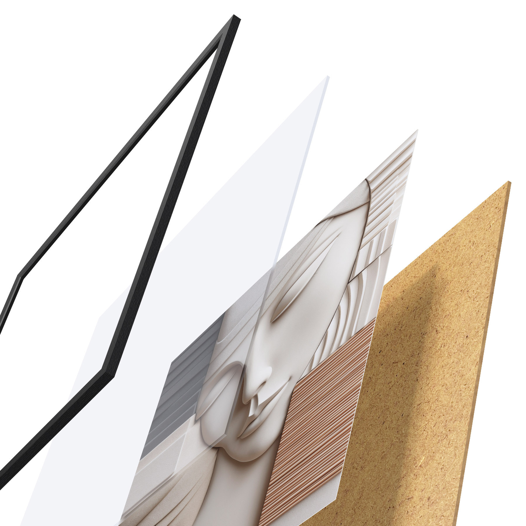 L’affiche encadrée est composée d’un cadre, d’un plexiglas, d’une image imprimée et d’un support en aggloméré. Elle est prête à être accrochée au mur grâce aux fixations situées à l’arrière.