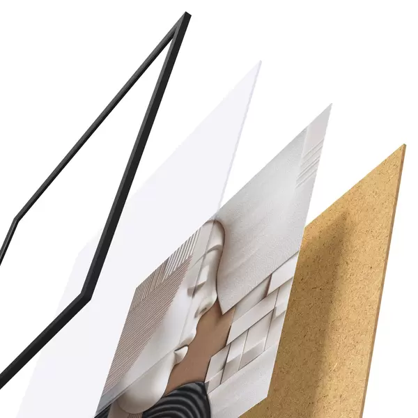 L’affiche encadrée est composée d’un cadre, d’un plexiglas, d’une image imprimée et d’un support en aggloméré. Elle est prête à être accrochée au mur grâce aux fixations situées à l’arrière.