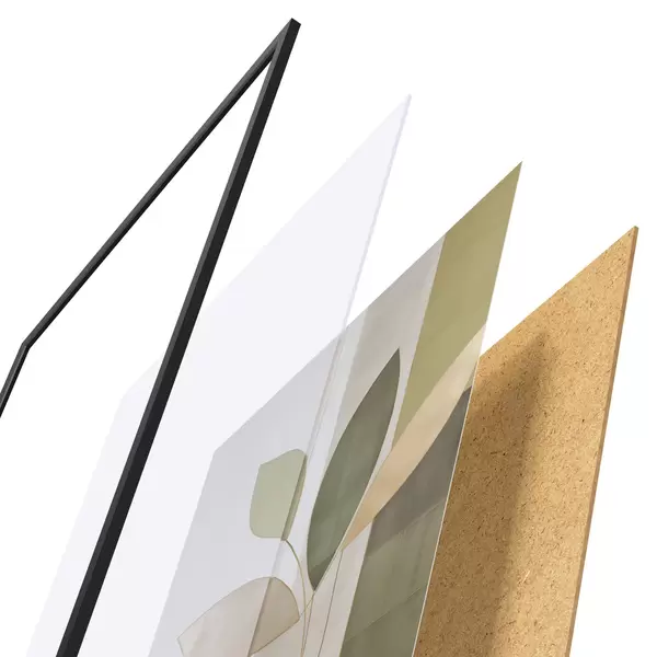 L’affiche encadrée est composée d’un cadre, d’un plexiglas, d’une image imprimée et d’un support en aggloméré. Elle est prête à être accrochée au mur grâce aux fixations situées à l’arrière.