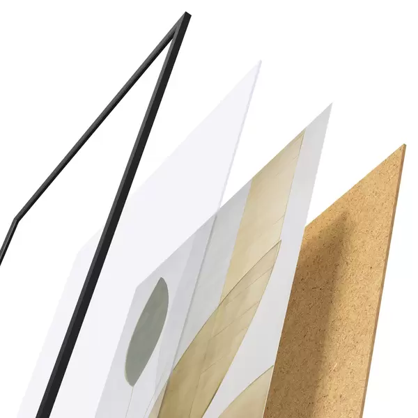 L’affiche encadrée est composée d’un cadre, d’un plexiglas, d’une image imprimée et d’un support en aggloméré. Elle est prête à être accrochée au mur grâce aux fixations situées à l’arrière.
