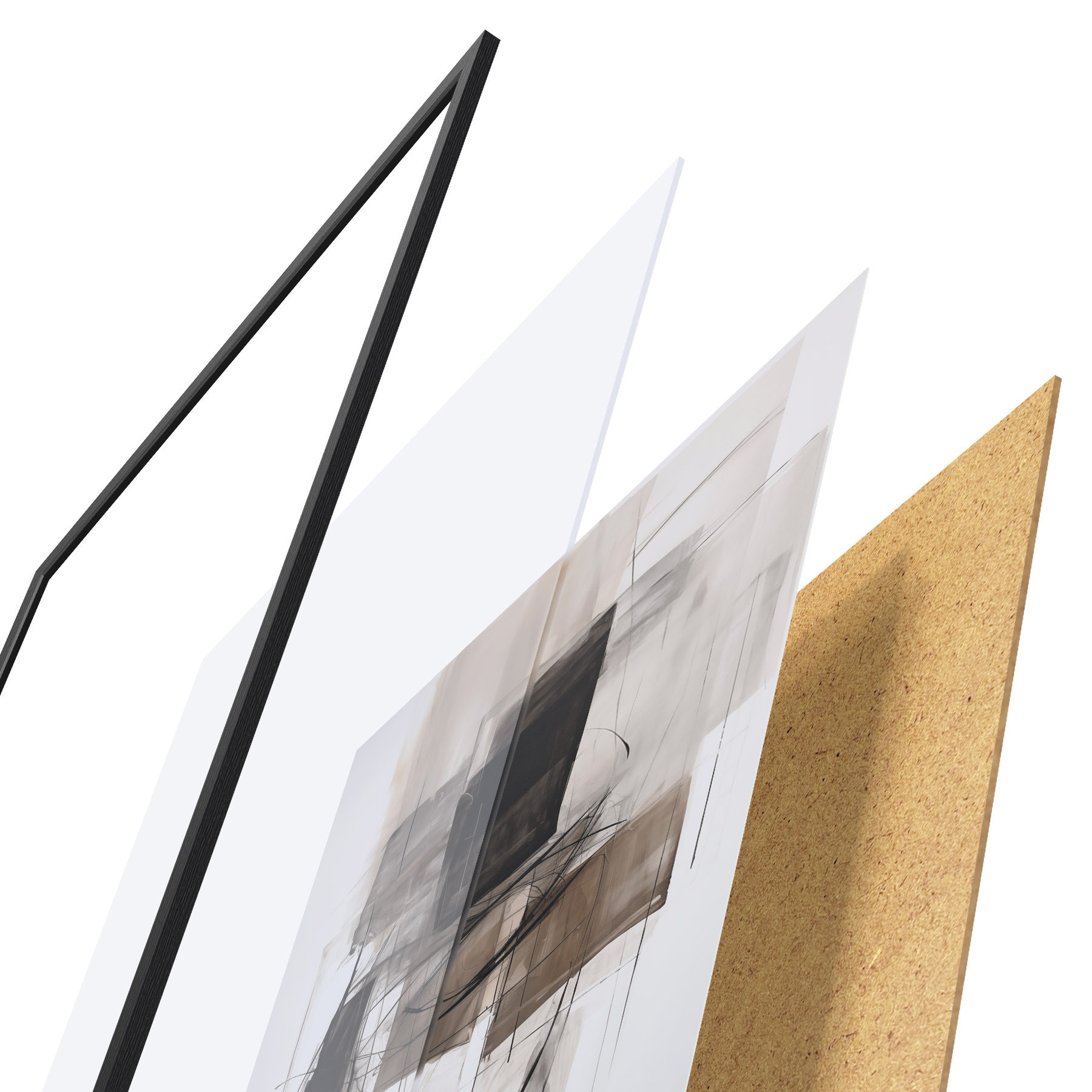 L’affiche encadrée est composée d’un cadre, d’un plexiglas, d’une image imprimée et d’un support en aggloméré. Elle est prête à être accrochée au mur grâce aux fixations situées à l’arrière.