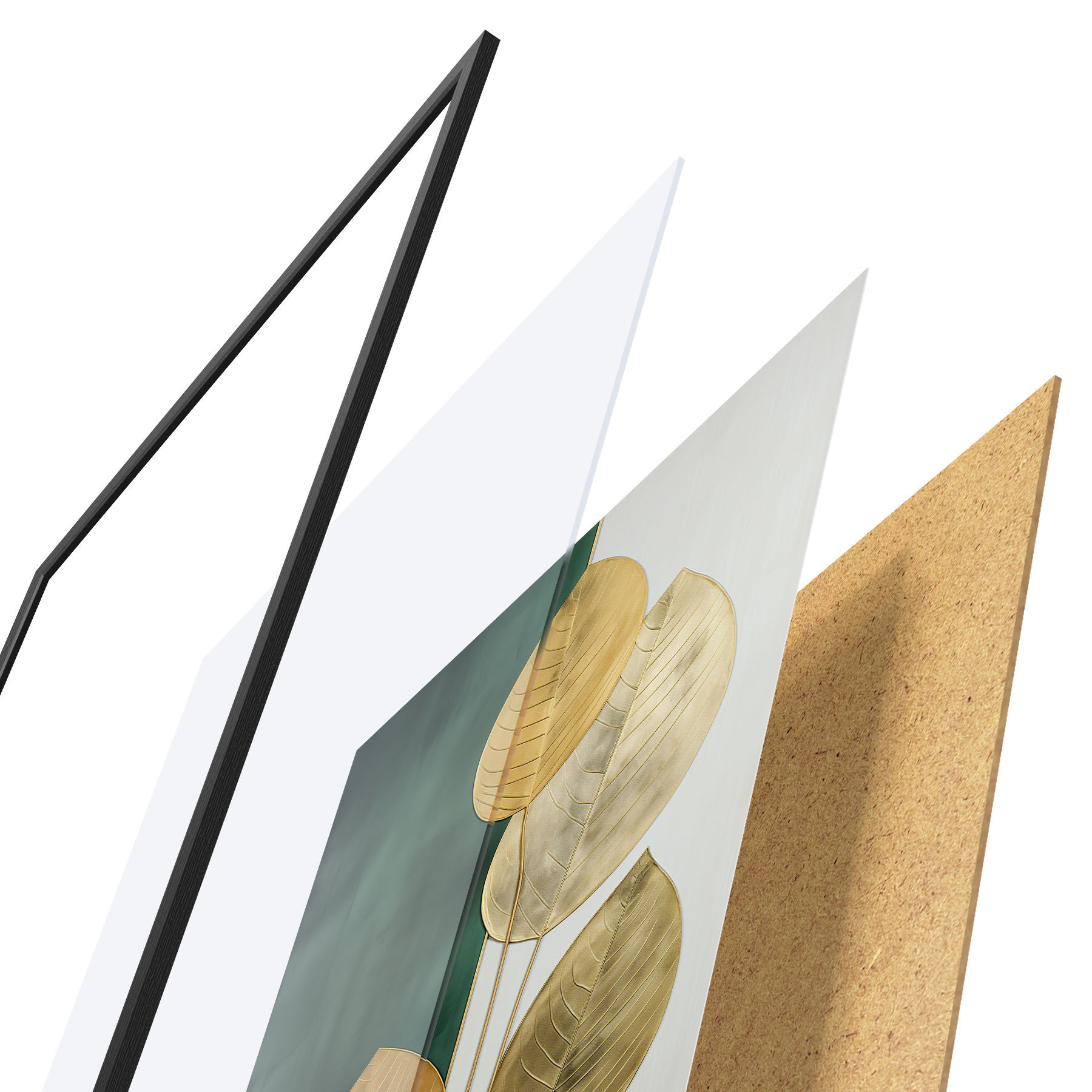 L’affiche encadrée est composée d’un cadre, d’un plexiglas, d’une image imprimée et d’un support en aggloméré. Elle est prête à être accrochée au mur grâce aux fixations situées à l’arrière.