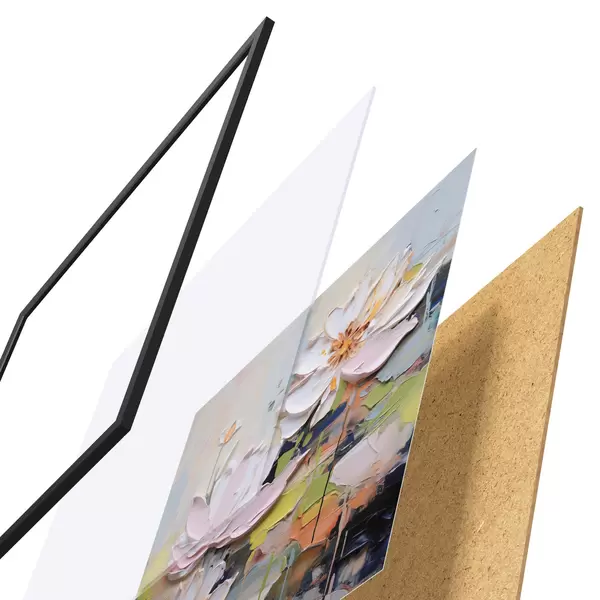 L’affiche encadrée est composée d’un cadre, d’un plexiglas, d’une image imprimée et d’un support en aggloméré. Elle est prête à être accrochée au mur grâce aux fixations situées à l’arrière.