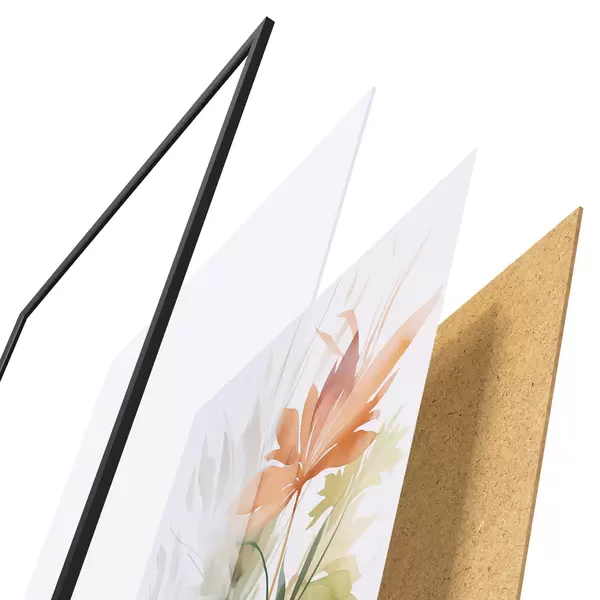 L’affiche encadrée est composée d’un cadre, d’un plexiglas, d’une image imprimée et d’un support en aggloméré. Elle est prête à être accrochée au mur grâce aux fixations situées à l’arrière.