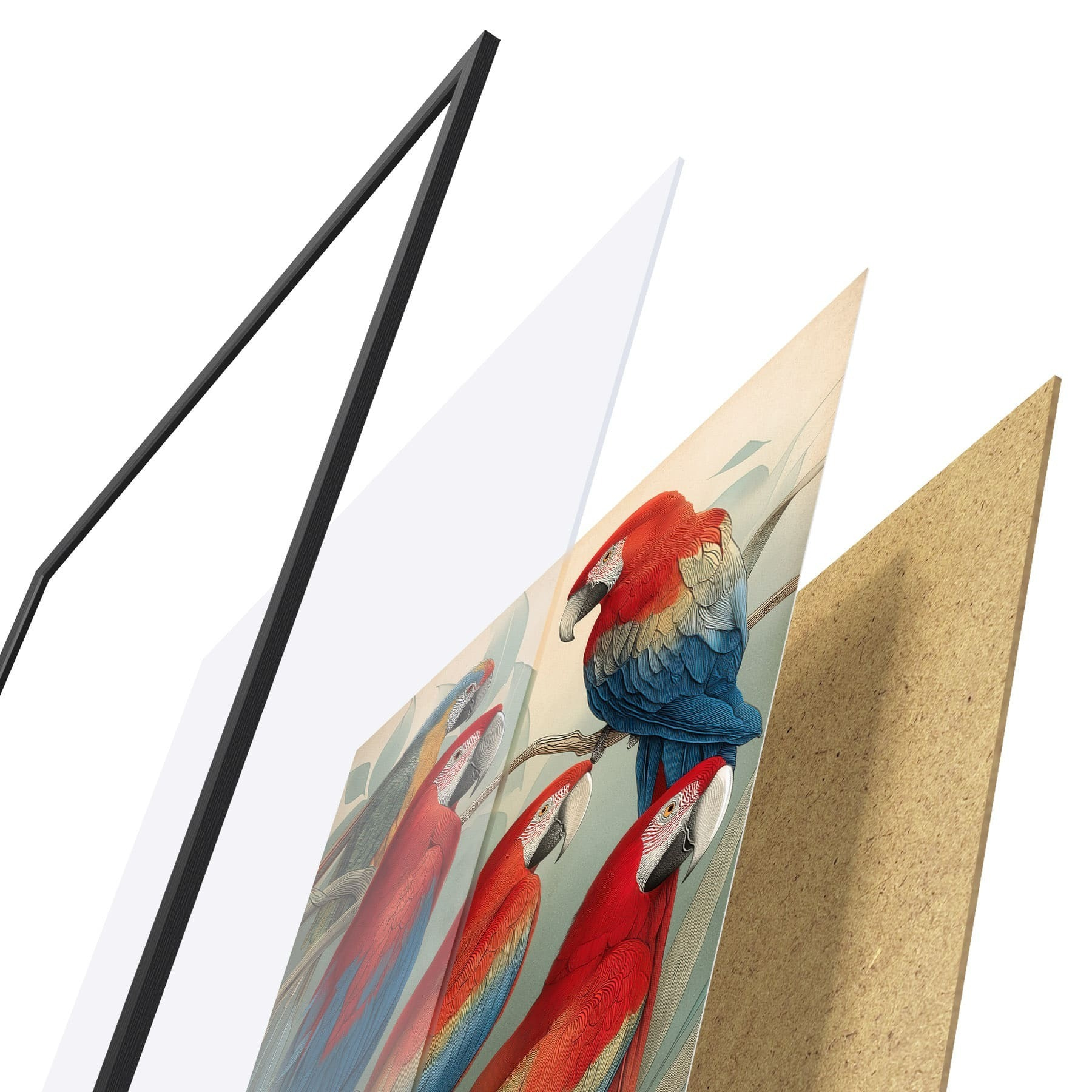 L’affiche encadrée est composée d’un cadre, d’un plexiglas, d’une image imprimée et d’un support en aggloméré. Elle est prête à être accrochée au mur grâce aux fixations situées à l’arrière.
