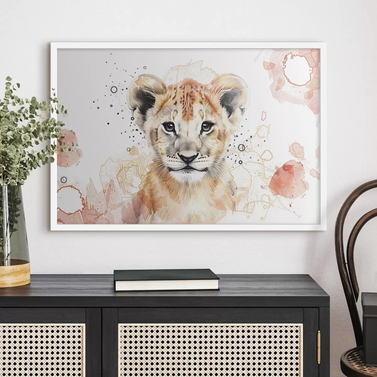 Poster Lionceau aquarelle, effet crayonné Nr f47742