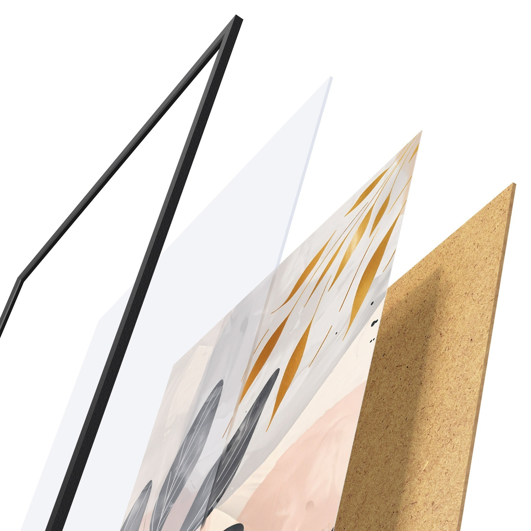 L’affiche encadrée est composée d’un cadre, d’un plexiglas, d’une image imprimée et d’un support en aggloméré. Elle est prête à être accrochée au mur grâce aux fixations situées à l’arrière.