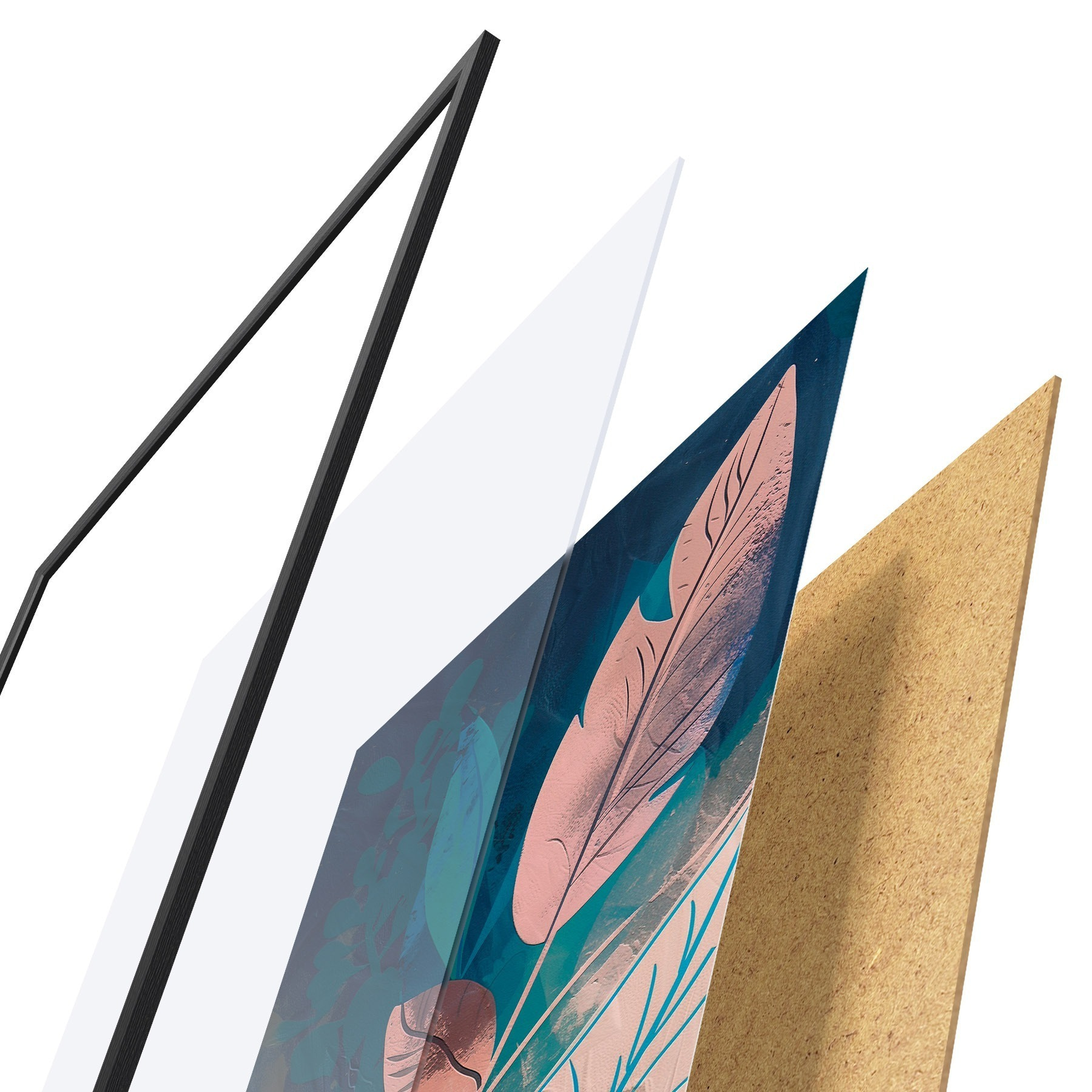 L’affiche encadrée est composée d’un cadre, d’un plexiglas, d’une image imprimée et d’un support en aggloméré. Elle est prête à être accrochée au mur grâce aux fixations situées à l’arrière.