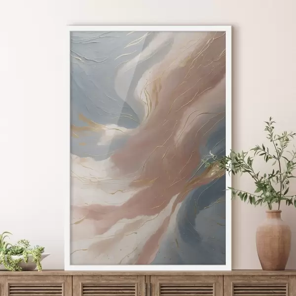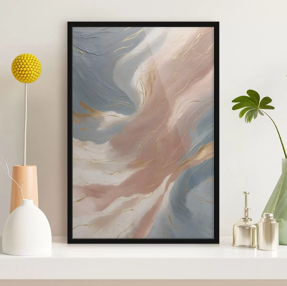 Poster Vagues abstraites dans des tons doux de bleu et de rose f47753