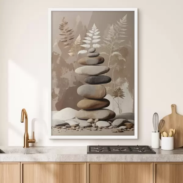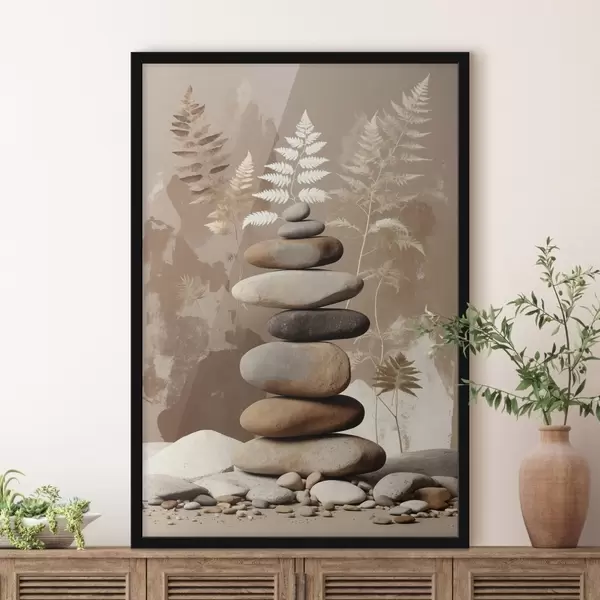 Poster Pile de pierres lisses avec un arrière-plan botanique f47764