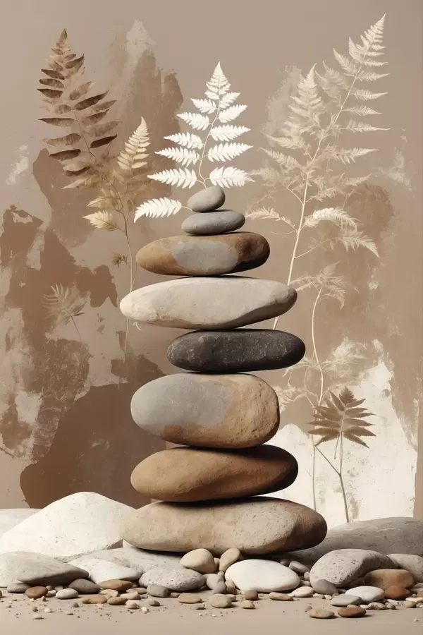 Poster Pile de pierres lisses avec un arrière-plan botanique Nr f47764