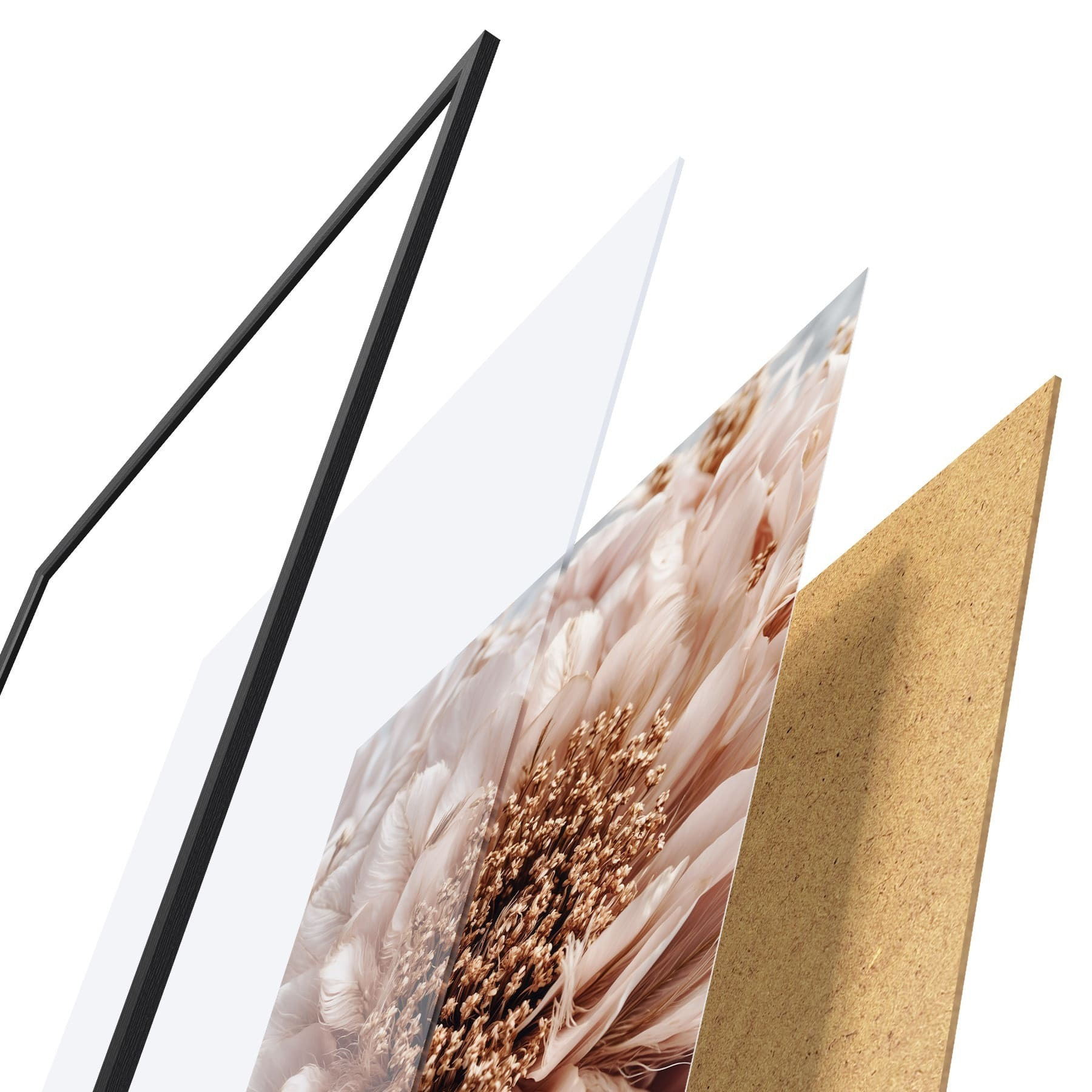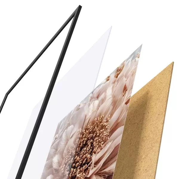 L’affiche encadrée est composée d’un cadre, d’un plexiglas, d’une image imprimée et d’un support en aggloméré. Elle est prête à être accrochée au mur grâce aux fixations situées à l’arrière.