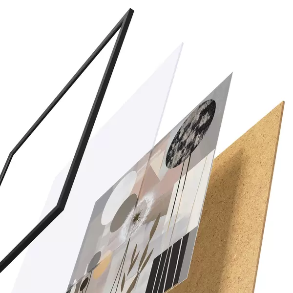 L’affiche encadrée est composée d’un cadre, d’un plexiglas, d’une image imprimée et d’un support en aggloméré. Elle est prête à être accrochée au mur grâce aux fixations situées à l’arrière.