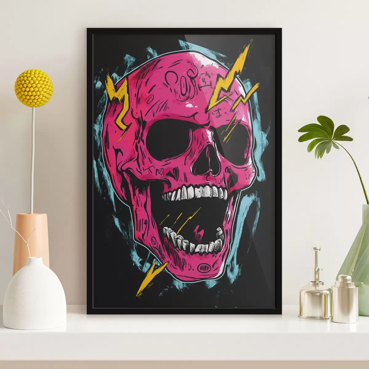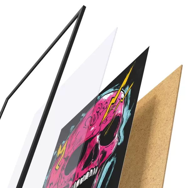 L’affiche encadrée est composée d’un cadre, d’un plexiglas, d’une image imprimée et d’un support en aggloméré. Elle est prête à être accrochée au mur grâce aux fixations situées à l’arrière.