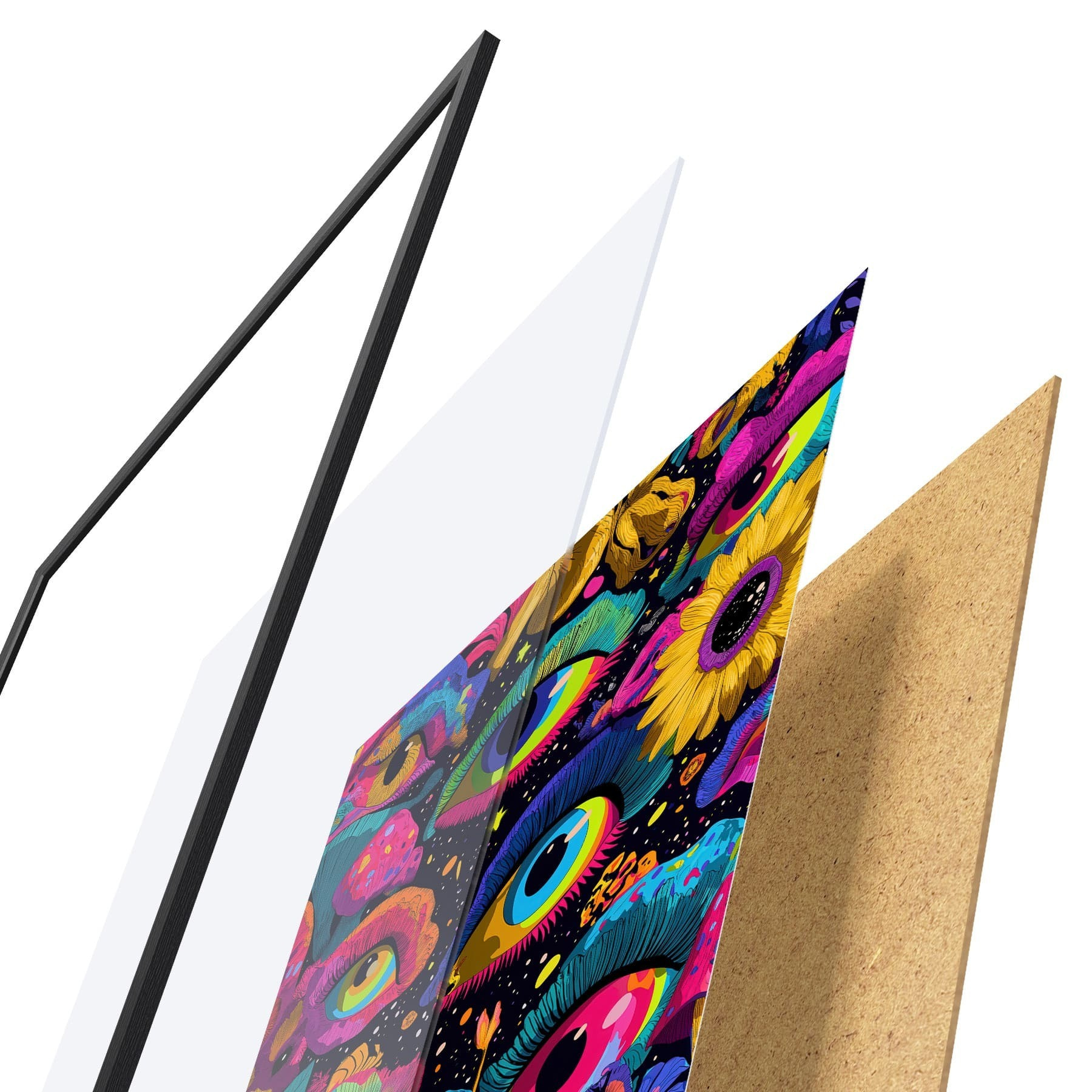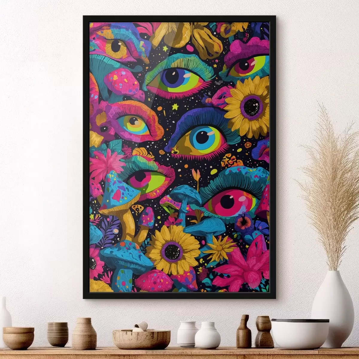 L’affiche encadrée est composée d’un cadre, d’un plexiglas, d’une image imprimée et d’un support en aggloméré. Elle est prête à être accrochée au mur grâce aux fixations situées à l’arrière.