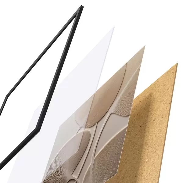 L’affiche encadrée est composée d’un cadre, d’un plexiglas, d’une image imprimée et d’un support en aggloméré. Elle est prête à être accrochée au mur grâce aux fixations situées à l’arrière.
