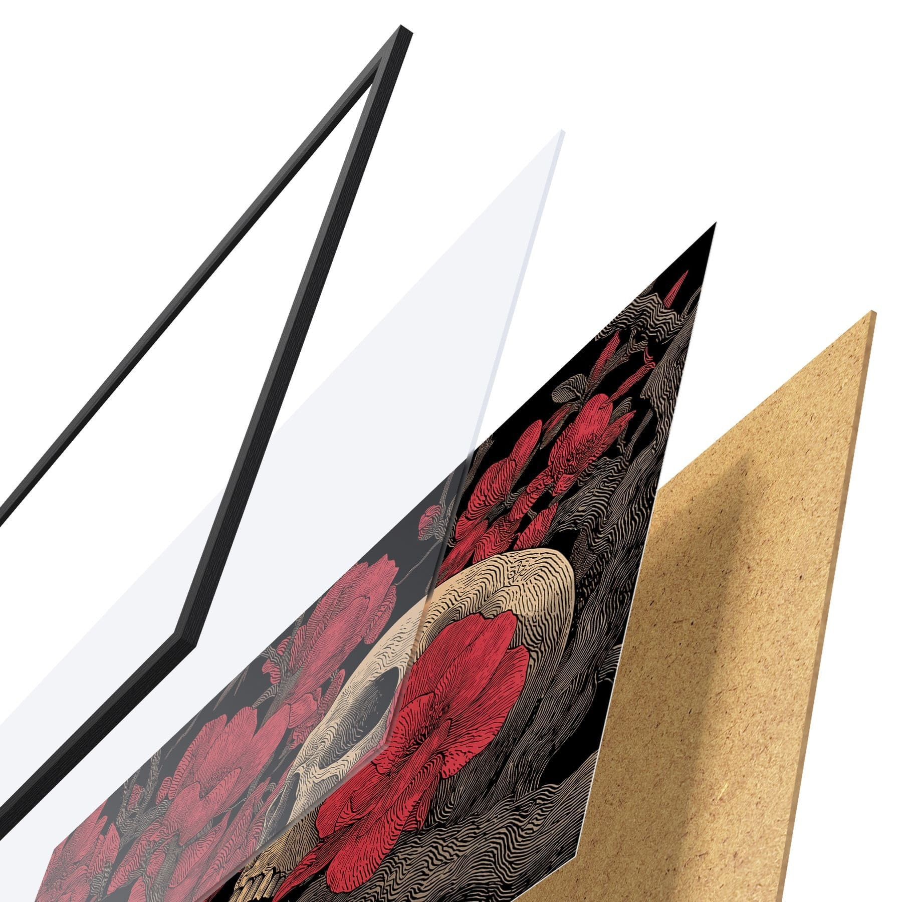 L’affiche encadrée est composée d’un cadre, d’un plexiglas, d’une image imprimée et d’un support en aggloméré. Elle est prête à être accrochée au mur grâce aux fixations situées à l’arrière.