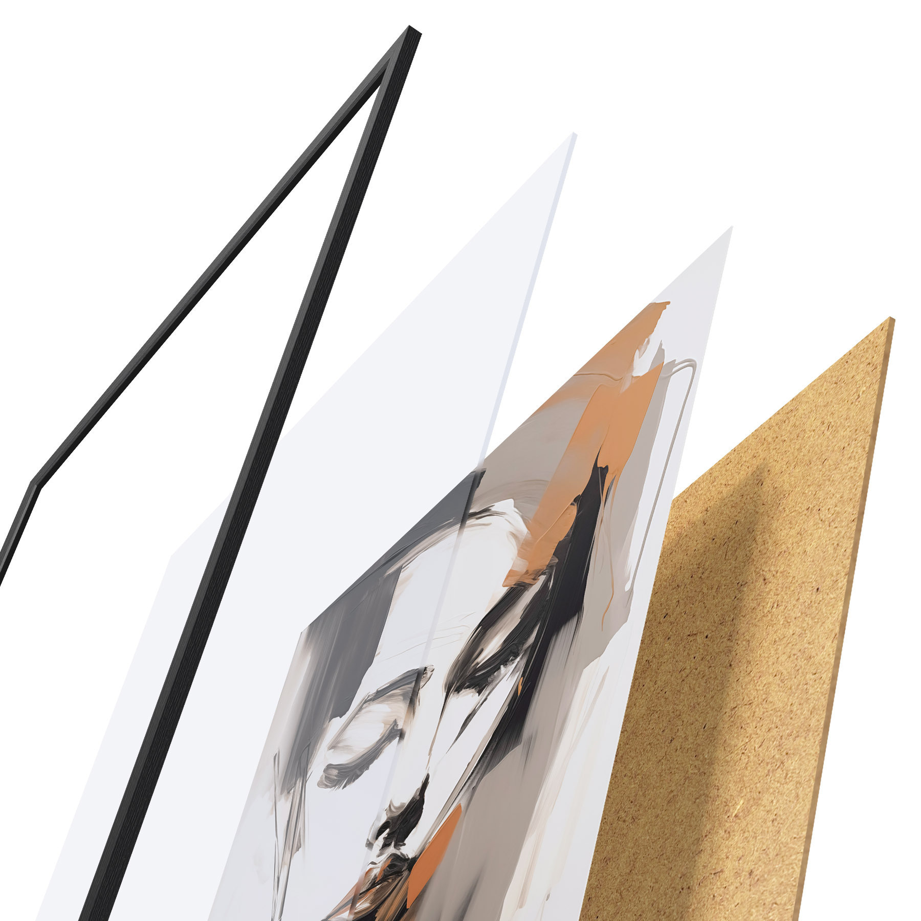 L’affiche encadrée est composée d’un cadre, d’un plexiglas, d’une image imprimée et d’un support en aggloméré. Elle est prête à être accrochée au mur grâce aux fixations situées à l’arrière.