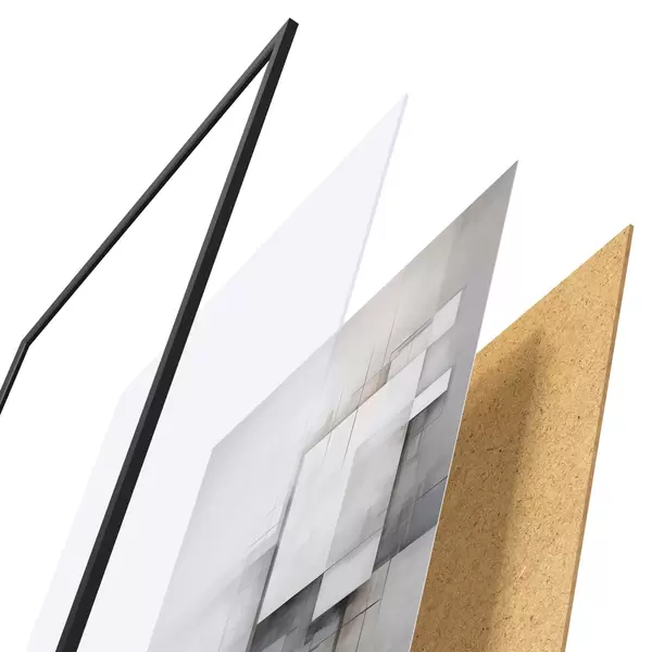 L’affiche encadrée est composée d’un cadre, d’un plexiglas, d’une image imprimée et d’un support en aggloméré. Elle est prête à être accrochée au mur grâce aux fixations situées à l’arrière.