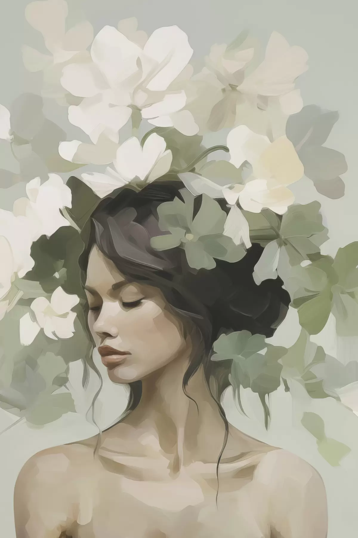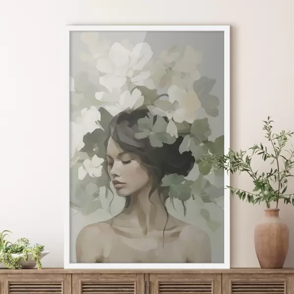 Poster Portrait d'une jeune fille avec une couronne de fleurs Nr f47807